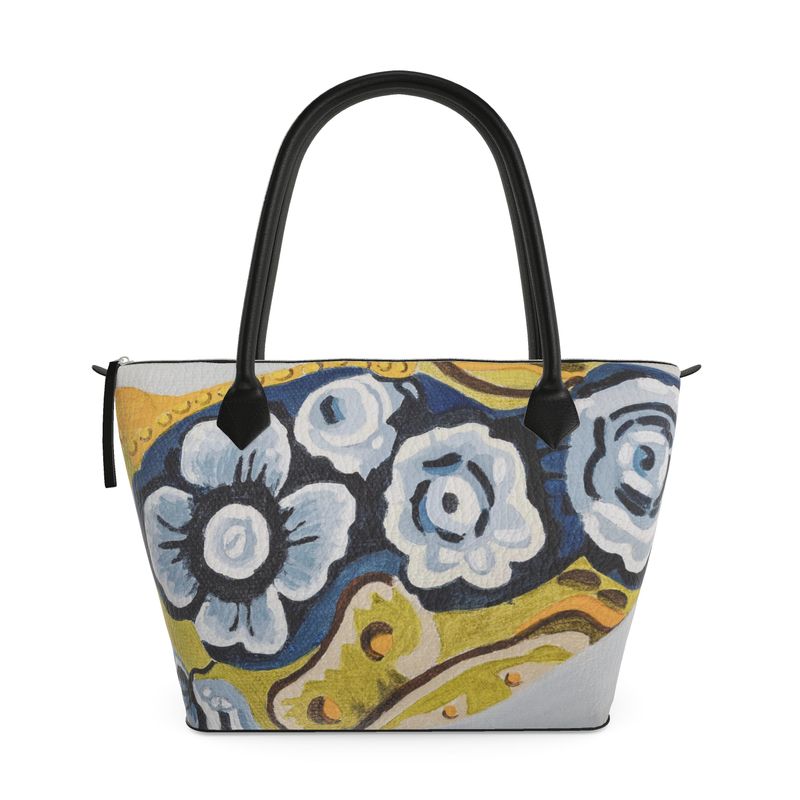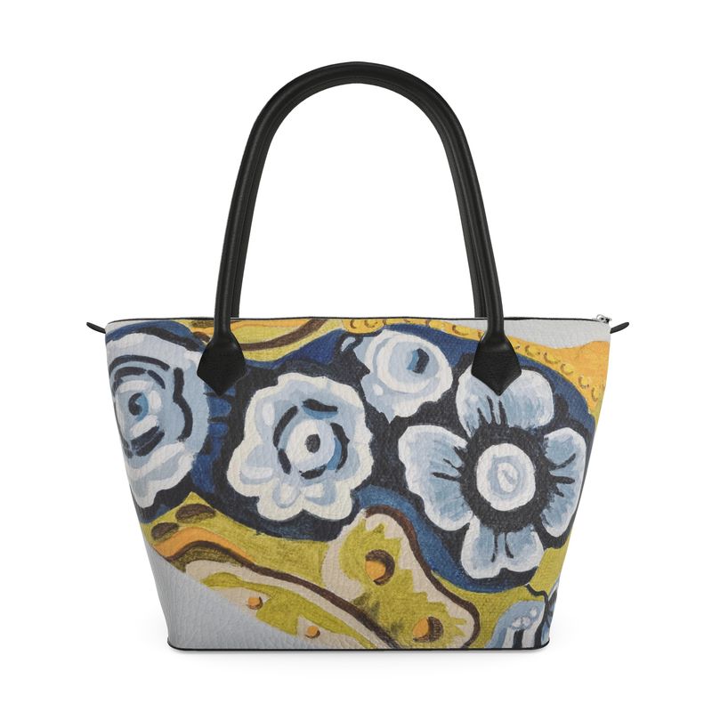 Printed directly onto luxurious Nappa leather, the bag’s artwork maintains the painterly texture and depth of the original. With its structured silhouette, fine stitching, and soft leather handles, this tote is both statement and staple: a work of art designed to move with you.