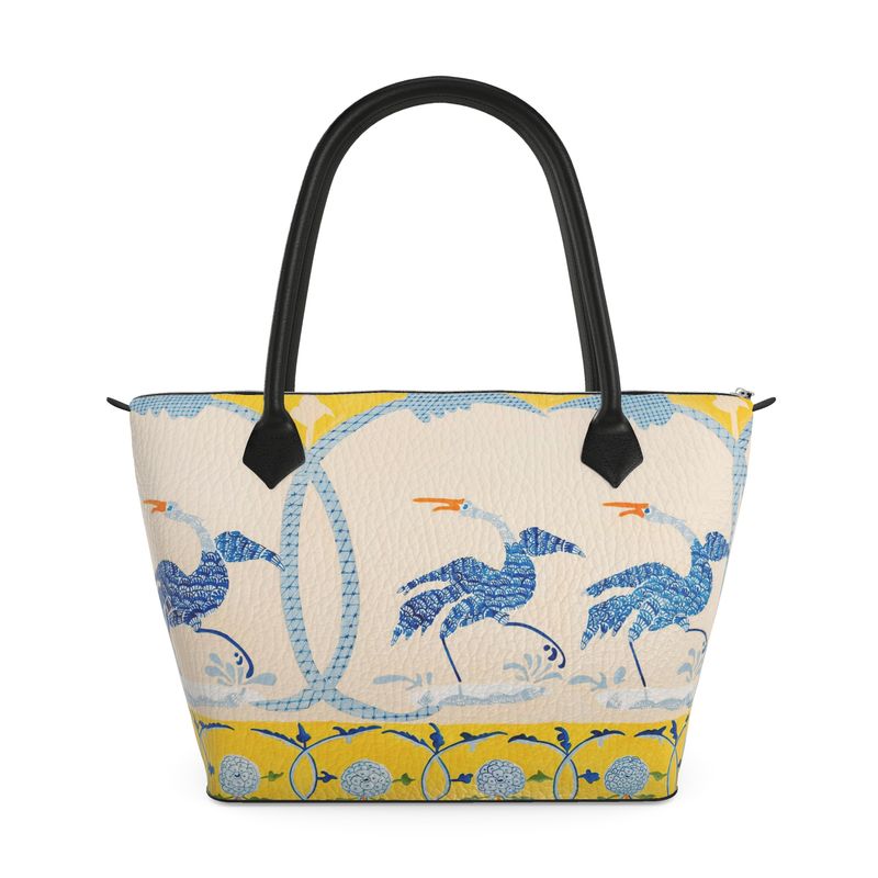 Printed directly onto luxurious Nappa leather, the bag’s artwork maintains the painterly texture and depth of the original. With its structured silhouette, fine stitching, and soft leather handles, this tote is both statement and staple: a work of art designed to move with you.