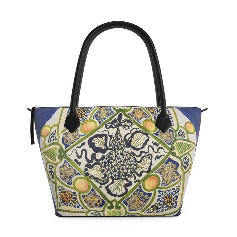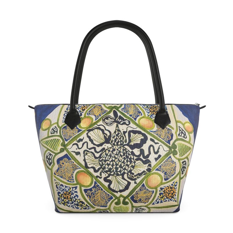 Printed directly onto luxurious Nappa leather, the bag’s artwork maintains the painterly texture and depth of the original. With its structured silhouette, fine stitching, and soft leather handles, this tote is both statement and staple: a work of art designed to move with you.